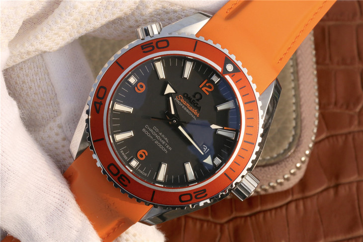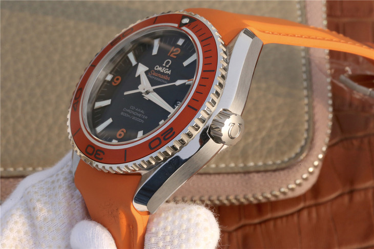 Một trong những mẫu đồng hồ Omega Super fake nổi bật nhất chính là chiếc đồng hồ màu cam. Sự kết hợp giữa viền màu cam, dây đeo cao su màu cam và các điểm đánh dấu cũng màu cam tạo nên một diện mạo rất tươi mới và dễ nhận diện. Điều thú vị ở đây là, sự cộng hưởng của màu cam trên viền, dây đeo và các điểm đánh dấu làm cho chiếc đồng hồ trông vô cùng đồng bộ mà vẫn nổi bật. Đặc biệt, đường kính 45mm và độ dày 17mm của vỏ đồng hồ tạo ra một sự khác biệt nhỏ, giúp chiếc đồng hồ toát lên vẻ mạnh mẽ và rất đàn ông.