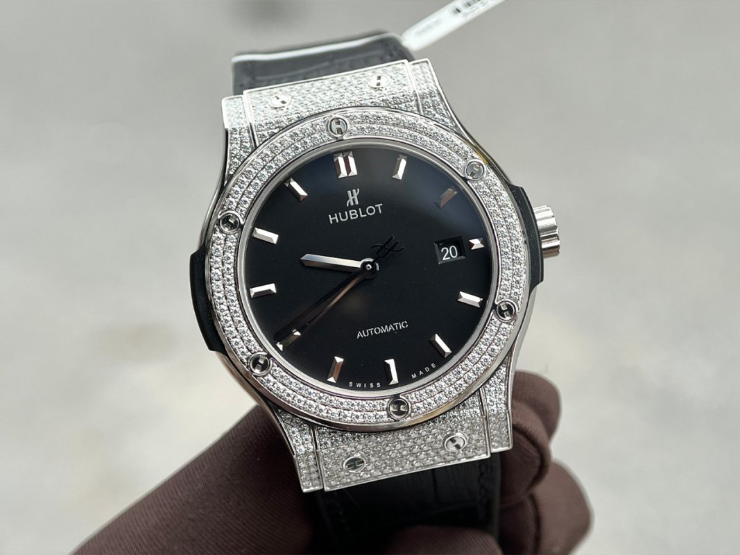 Tất cả các tính năng này cùng hòa quyện với nhau để tạo nên một chiếc đồng hồ không chỉ là một phụ kiện thời trang mà còn là biểu tượng của sự đẳng cấp và sang trọng trong mọi hoàn cảnh. Hublot 1:1 Titanium Gray Viền Kim Cương Moissanite Đơn là sự lựa chọn hoàn hảo cho những người yêu thích thế giới đồng hồ cao cấp và sành điệu.