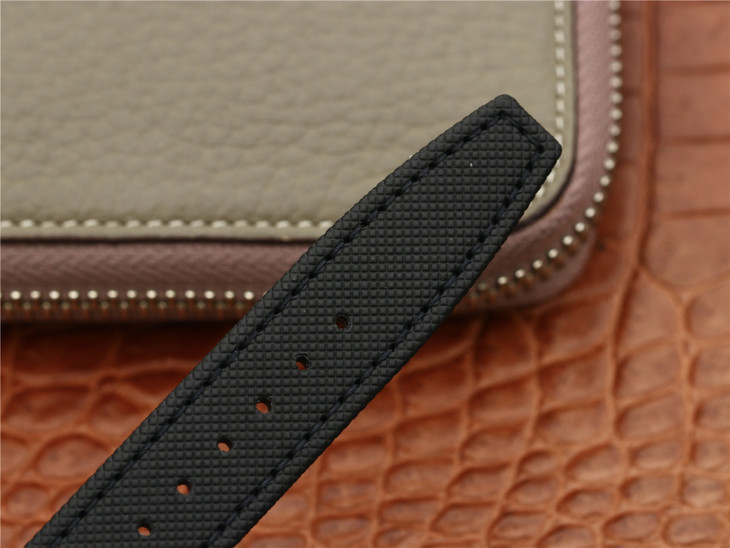 Cuối cùng, đó là về dây đeo, được làm bằng nylon ở bên ngoài và da thật ở bên trong. Chất liệu nylon đen bên ngoài giữ vẻ ngoài mát mẻ, trong khi da ở mặt sau đảm bảo sự thoải mái khi đeo. Ngày nay, rất nhiều đồng hồ Thụy Sĩ áp dụng thiết kế này trong dây đeo đồng hồ của họ.