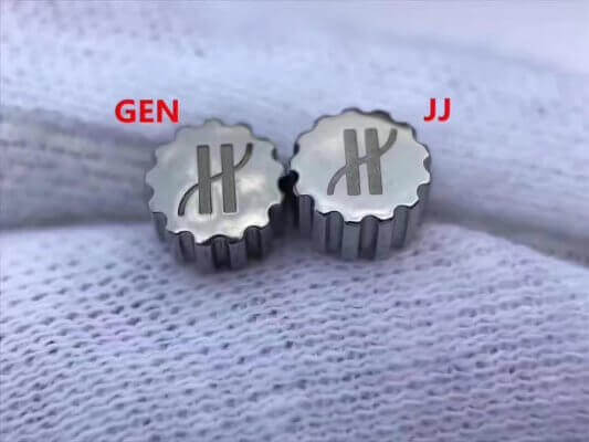 Từ hình ảnh dưới đây, bạn có thể thấy Crown ở bản replica có cùng rãnh và vát như chính hãng. Sau khi được nhà máy JJ thử nghiệm, Crown ống và các bộ phận khác trên đồng hồ Hublot Replica này hoàn toàn có thể lắp vừa trên đồng hồ chính hãng.
