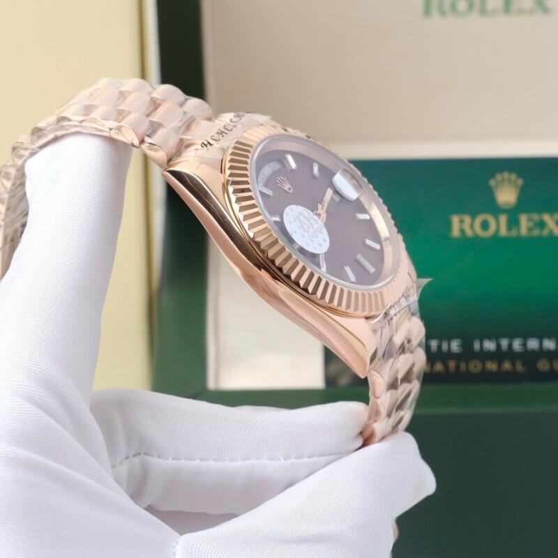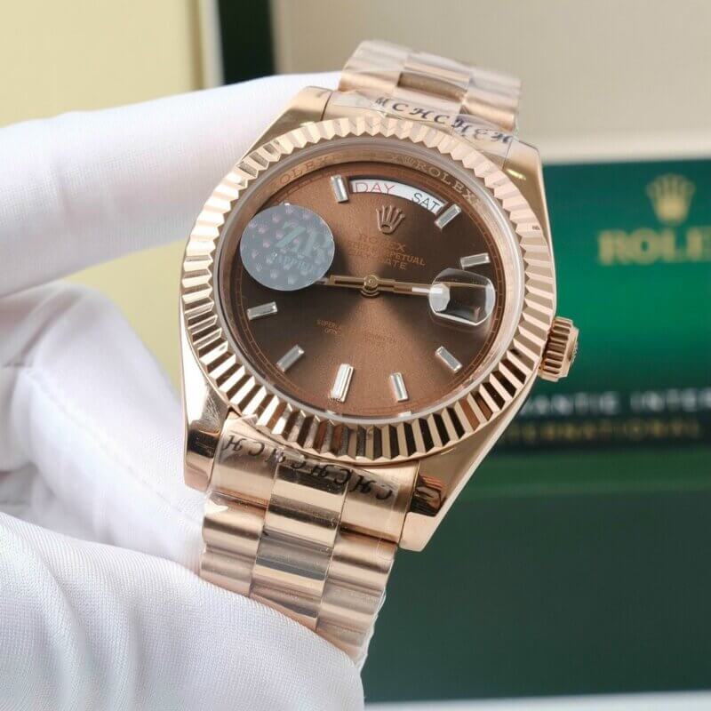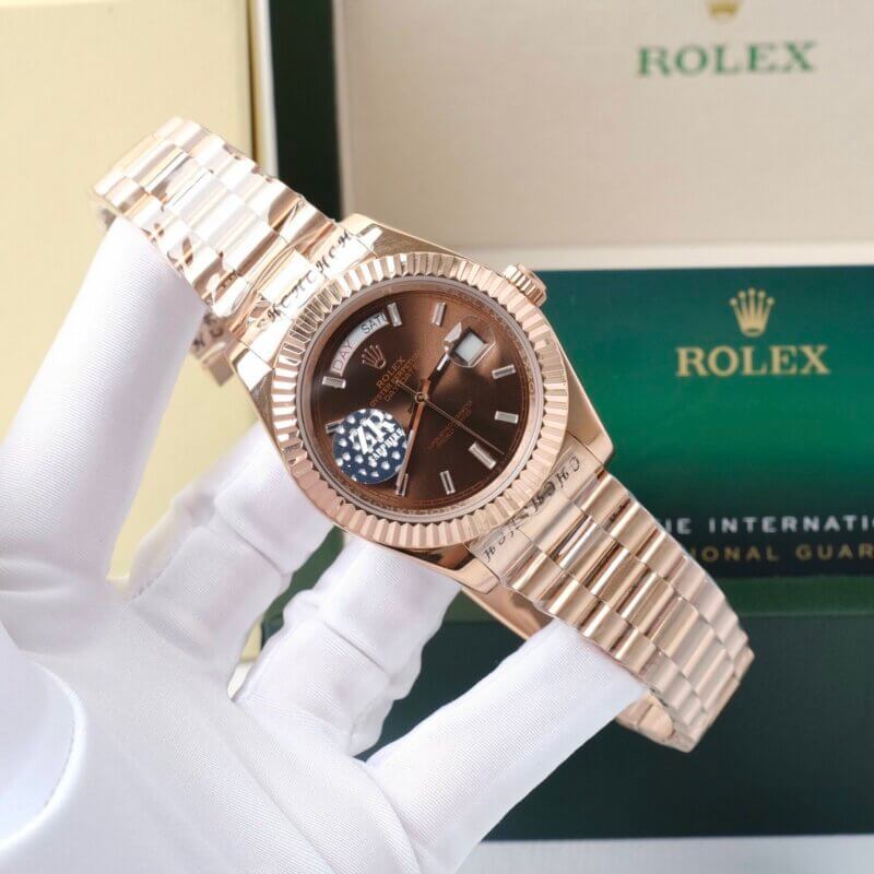 Đồng Hồ Rolex Fake Máy Nhật Day-Date 40mm mặt Cafe