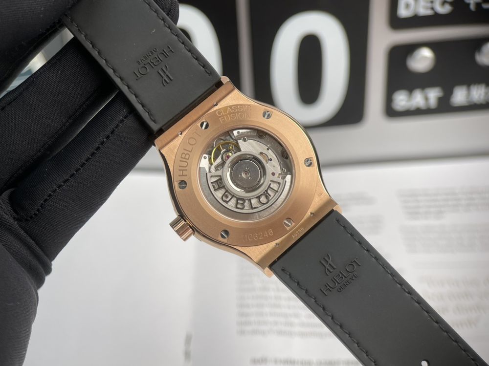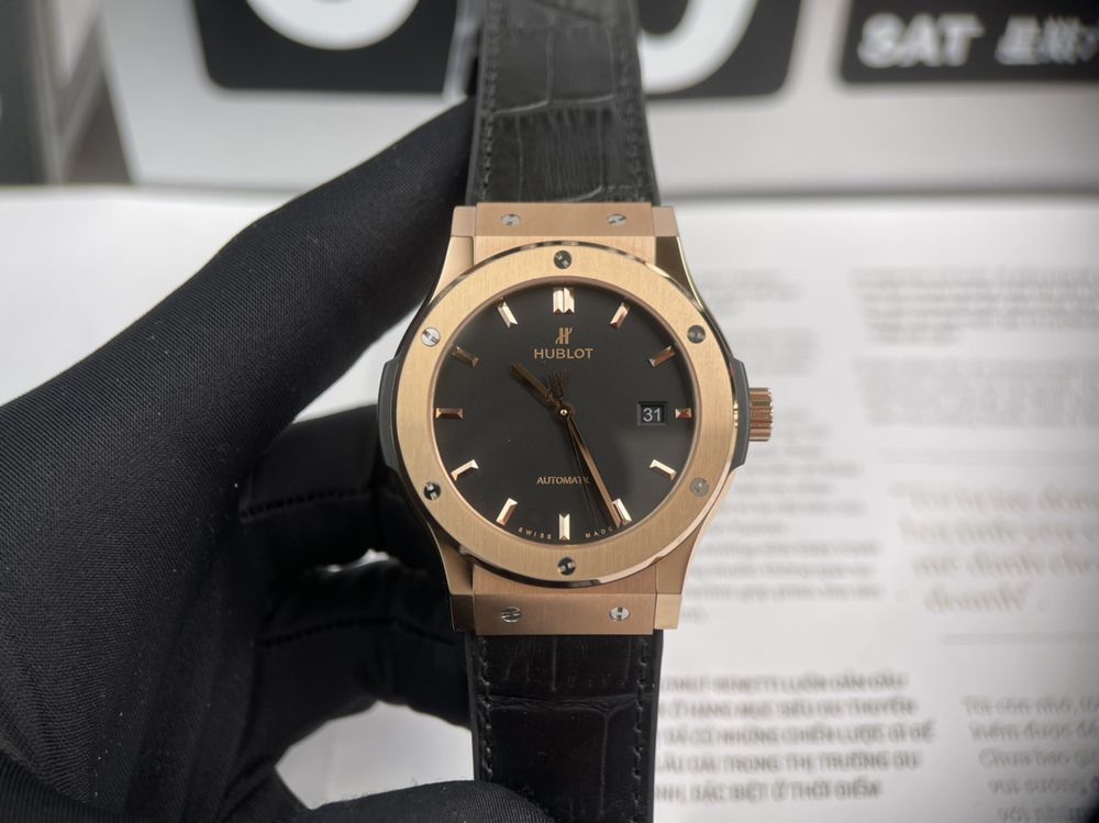Khi nói đến sự đẳng cấp và sang trọng, không thể không nhắc đến chiếc đồng hồ Hublot Nam Rep 1:1 Classic Fusion King Gold mặt đen. Từ chất liệu bên trong đến bên ngoài đều là hàng trung, cao cấp bóng bẩy giúp nâng tầm đẳng cấp, phong cách cho người sở hữu. Từ lần đầu tiên chạm mắt đến việc đeo lên cổ tay, mỗi chi tiết của sản phẩm này đều thể hiện sự tinh tế và đẳng cấp, khiến bất kỳ ai sở hữu nó đều tỏa sáng và thu hút sự ngưỡng mộ từ mọi người xung quanh. Dưới đây, hãy cùng Prowatch Luxury “mổ xẻ” chi tiết thông tin về em nó nhé !