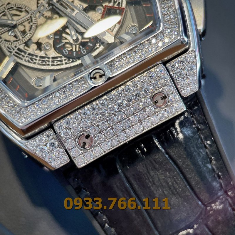Vỏ tonneau của Hublot Replica 1:1 642.NX.0170.RX.1704 có hình dáng khá độc đáo và nổi bật. Điểm nhấn đặc biệt trên vỏ là 166 viên kim cương moissanite được đính trên bề mặt tạo điểm nhấn lấp lánh và sang trọng. Tổng khối lượng của các viên kim cương này khoảng 1 carat, tăng thêm giá trị thẩm mỹ cho sản phẩm.